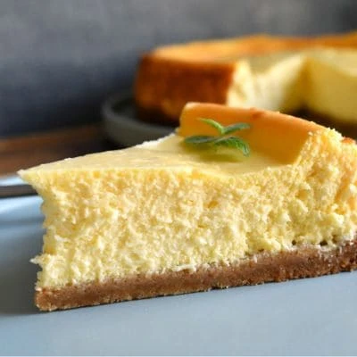 Suave tarta de queso sobre galleta molida y fruta fresca.