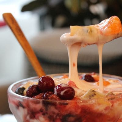 Frutas frescas de estación, miel y granola. ¡Refrescante, sana y deliciosa!